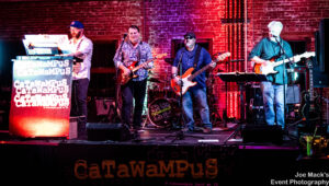 “The name comes to us from one of the romantic partners of a previous member of the band. It hit, it fit, and it stayed. The name represents us well as a group, and does the same for our song choices. We try to pick songs from an artist that are not the low-hanging fruit ones that you expect to hear, but are instead just slightly off the mark of what you’d expect. A dart throw that is ever so slightly Catawampus from the predictable “bullseye” song would be from that artist. This isn’t an exclusive rule, but does continue to surface as a pattern. It also applies to the artists we chose to cover, not just the songs themselves. Plus, it’s a fun word that shows up in unexpected places. Now, you’ll start seeing it, too.”